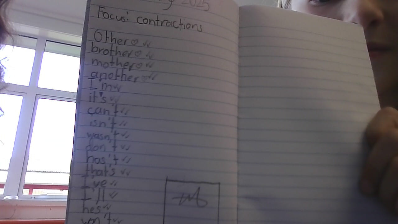 This my spelling list for this week. Every week we take a different spelling list home to practice with Mum or Dad. My focus for his week is contractions. Contractions are two words that make a new word jointed by an apostrophe.