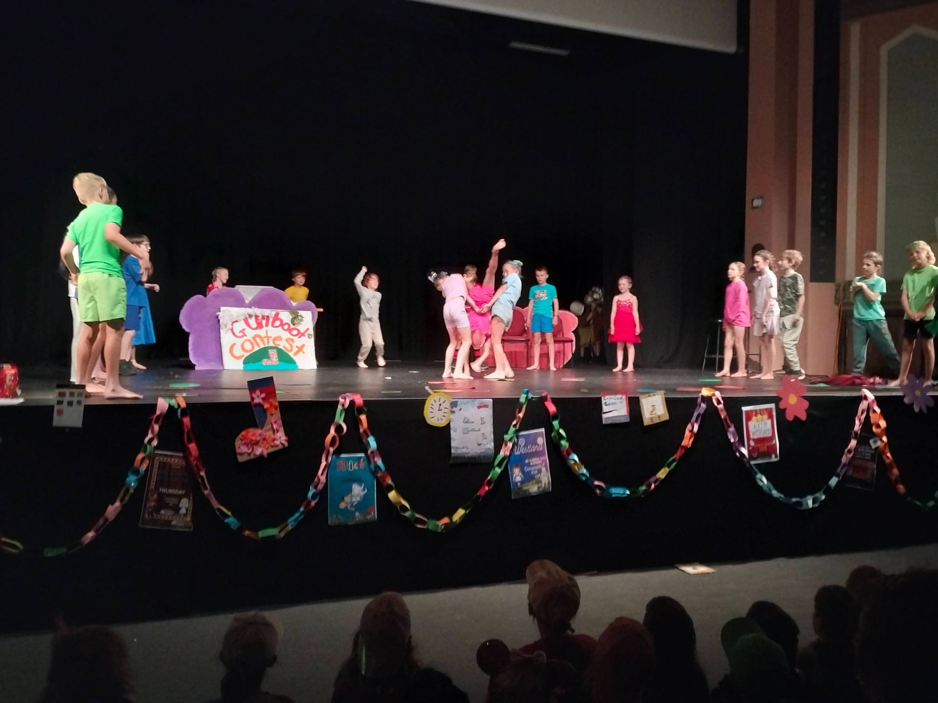 It was about a gumboot contest. We did a dance to distract the guards. Rosie and Natalya did some gymnastics on stage on the rotation I did a flip.